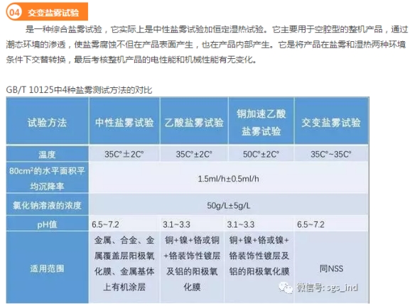 是一种综合盐雾试验,它实际上是中性盐雾试验加恒定湿热试验。它主要用于空腔型的整机产品,通过潮态环境的渗透,使盐雾腐蚀不但在产品表面产生,也在产品内部产生。它是将产品在盐雾和湿热两种环境条件下交替转换,最后考核整机产品的电性能和机械性能有无变化。