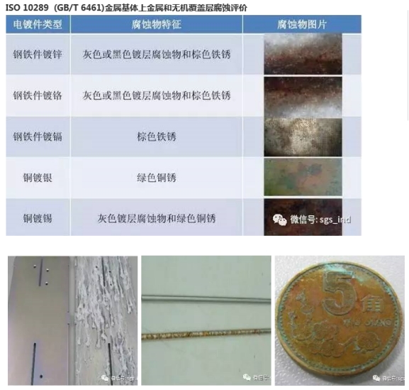 这种方法是根据盐雾试验后腐蚀物的外观特征来进行表述,常见电镀件盐雾试验后腐蚀特征。