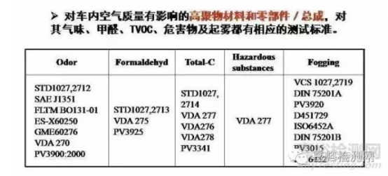 目前,国内及欧、美、日均没有汽车车内空气质量的国家标准、法规。但有资料表明,国外主要汽车公司对于车内空气质量的控制,主要通过对配套零部件的管控来实现的。今天,我们就侧重来讲讲汽车VOC的相关标准及主要测试方法。