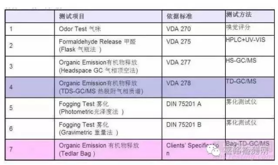 PV3938测试标准:测试条件:23oC、50% RH;测试方法:静态测试;采样方法:使用红外灯同时照射车内不同部位使其表面温度达到65oC,封闭一定时间后采集车内空气样品。