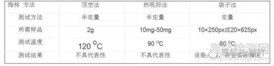 目前对于汽车整车VOC含量的测试标准主要有美系、欧系以及日系三种,分别对应的是顶空方法(HS-GC/MS)、热脱附法(TD-GC/MS)以及袋子法(Bag-TD-GC/MS)。下面将分别介绍并对比三种VOC含量测试的差异:
